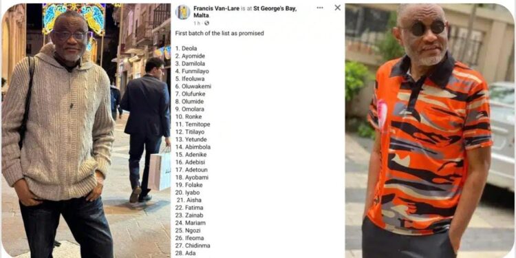 The man who is ex-husband to relationship counselor, Amara Nwosu, took to his Facebook account to share their names in batches.